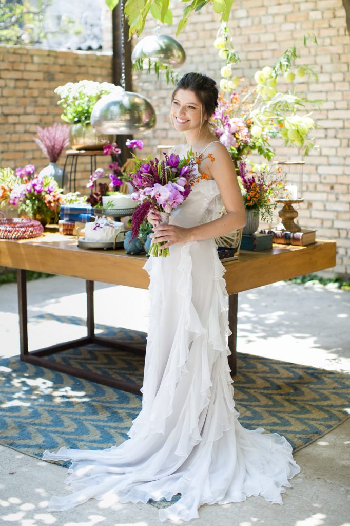 Contudo, casamentos durante o dia são muito democráticos e abrem espaço também para o vestido princesa, sonho de muitas noivas. Um modelo com véu e cauda menores, combinam com esse tipo de festa assim como os vestidos mais leves.